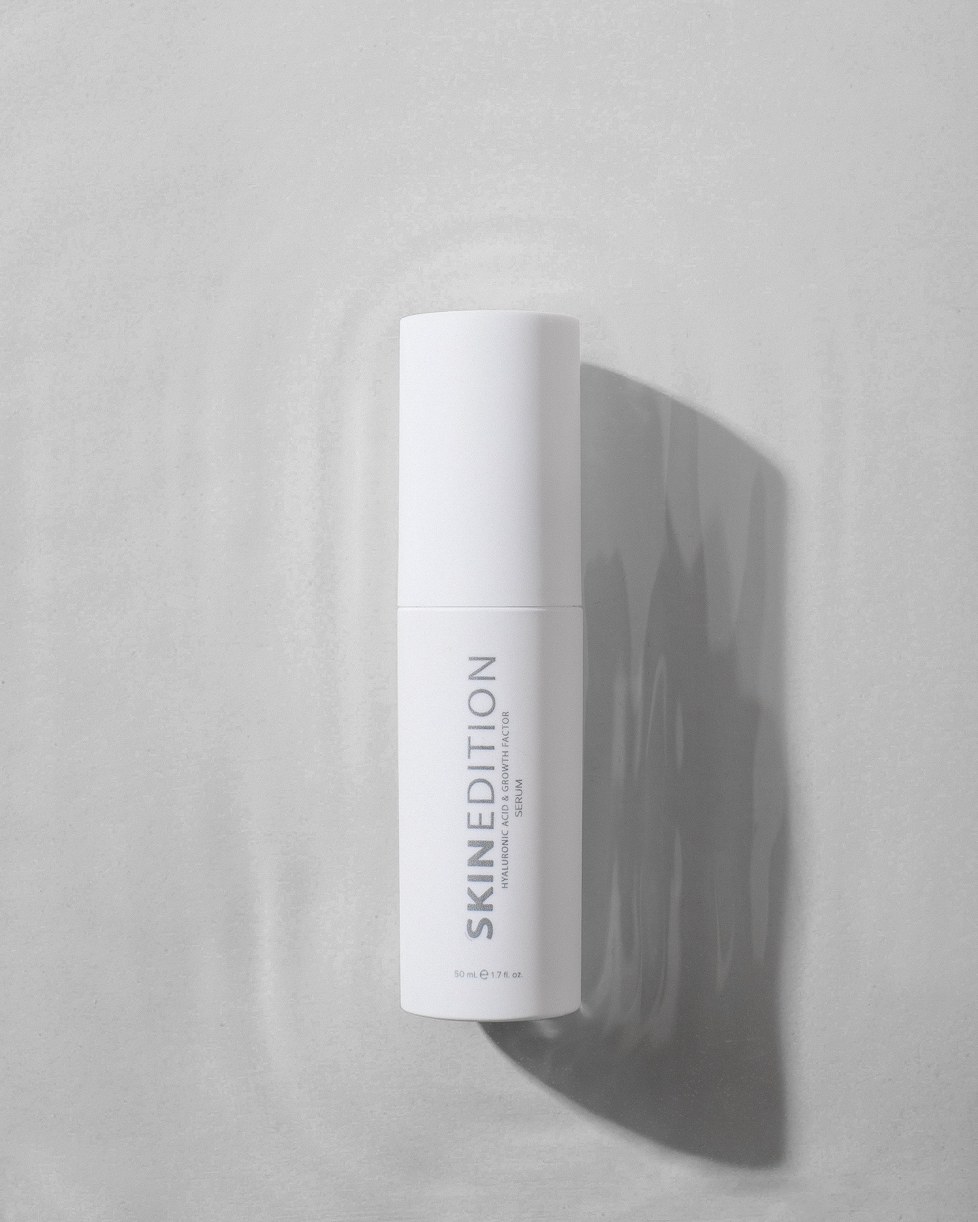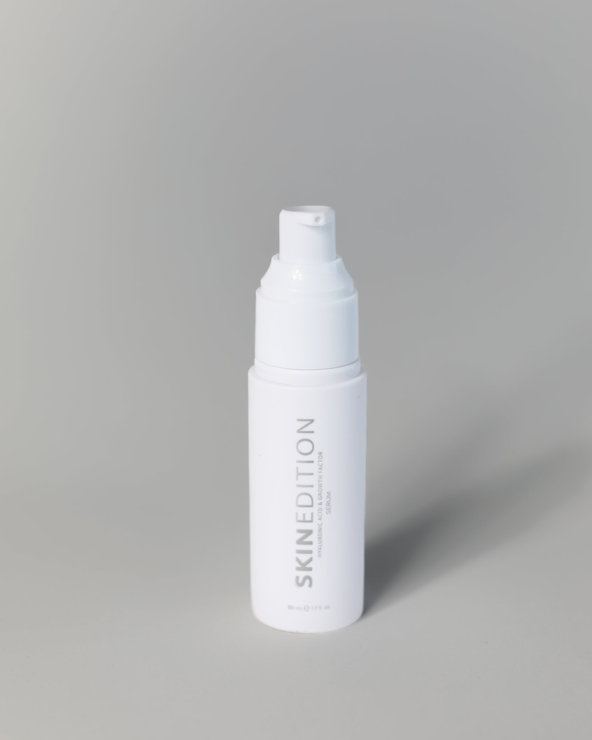 The Hyaluronic Acid & Fibroblast Growth Factor Serum targets age related degradation by reactivating collagen and dermal stem cell activity, thus improving the texture and elasticity in the skin.
