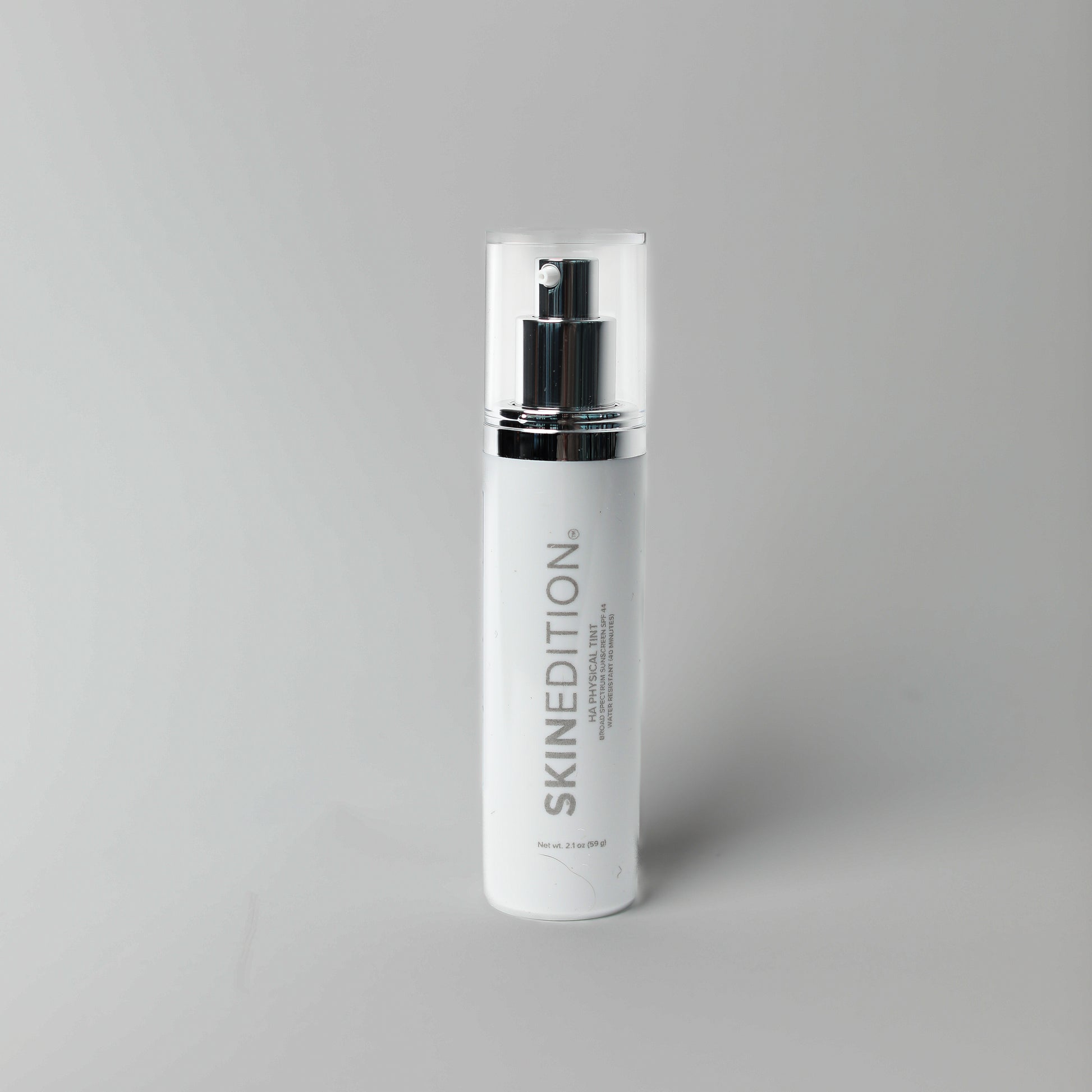 HA Physical Tint is a water resistant, physical sunscreen that features a moisturizing base with a sheer universal tint beneficial for most skin types including post procedure. Zinc Oxide 10% and Titanium Dioxide 5.5% provide protection against UVA-aging and UVB-burning rays. In addition to the mineral based sun protection, this gentle sunscreen also contains Hyaluronic acid which effectively hydrates the skin to restore a youthful appearance. This product is light enough to wear alone or under makeup for everyday protection.